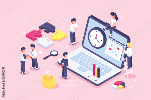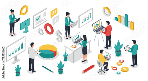Food laboratory research isometric flowchart, vector illustration. Scientists, male and female characters testing safety and quality of food products in laboratory. Scientific study of foods.