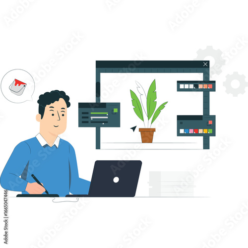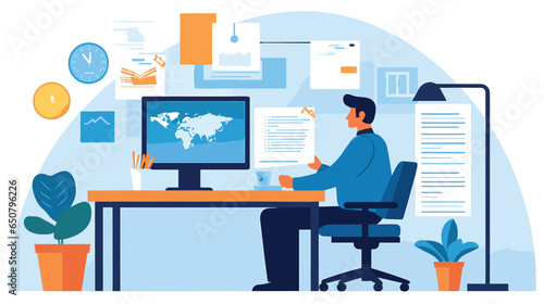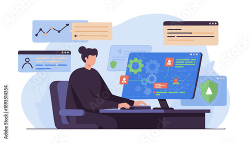 Vector illustration of fast food restaurant worker saleswoman taking order. Food people flat style design element, icon isolated on white background.