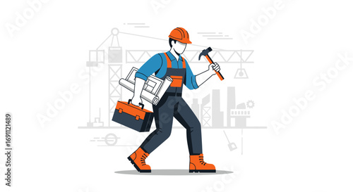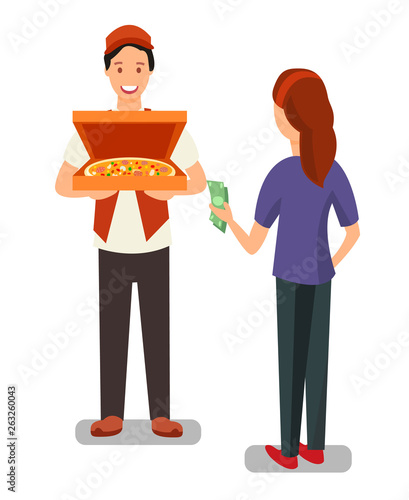 Vector illustration of waiter holding tray with burgers and cola. Food people flat style design element, icon isolated on white background.