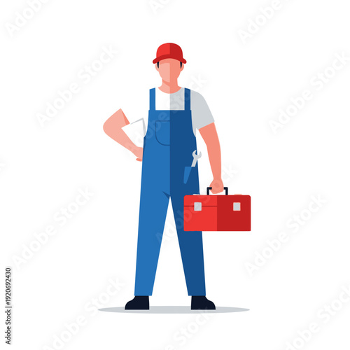 Vector illustration of courier with red delivery bag. Home delivery concept. Food people flat style design element, icon isolated on white background.