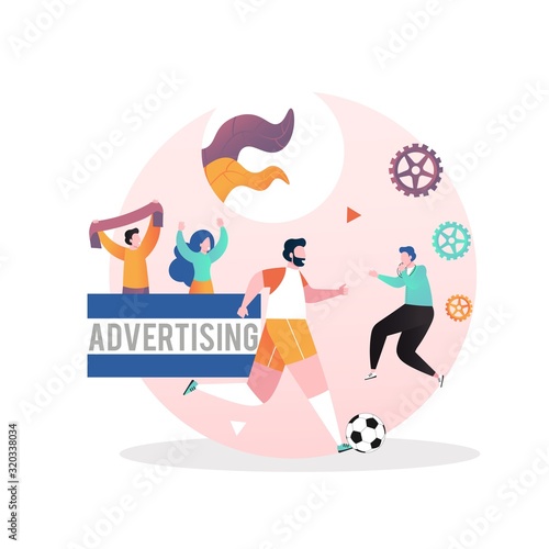 Football player dribbling soccer ball and referee blowing whistle, vector illustration. Football game championship concept for web banner, website page etc.