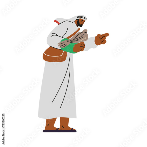 Fortune man holding hat of gold money coin vector icon isolated on white background