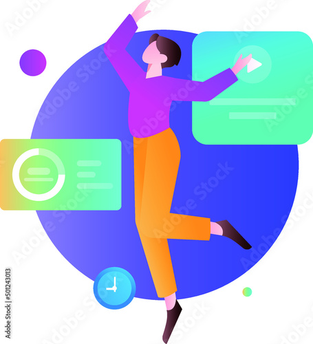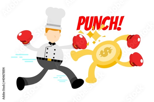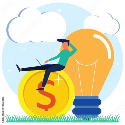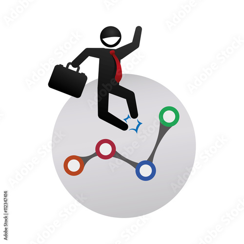 Fortune man pushing wheelbarrow with money bag vector icon isolated on white background