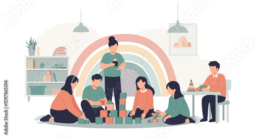 Fortune teller predicting future reading tarot cards, palm lines, using crystal ball and candles, flat vector illustration. Esoteric and divination, occult session, palmistry.