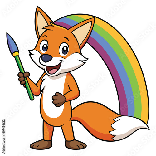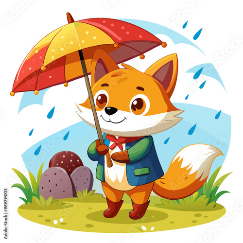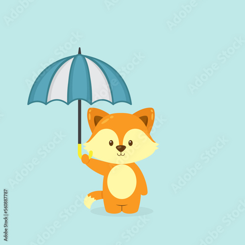 Fox flying on umbrella cute vector. Happy wild red animal illustration. Funny cartoon autumn character flat icon isolated on white background