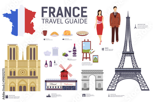 France world travel vector background. Paris city paper cut skyline with landmark building illustration. Postcard with cityscape panorama. Honeymoon vacation romantic trip
