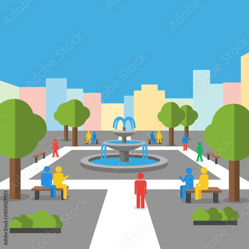 Free Wi-Fi zone in the park concept vector illustration. People using internet smart phones while sitting on bench, walking along the street. Flat style design.