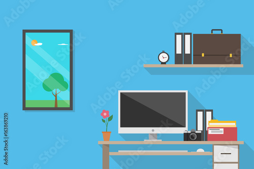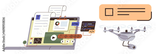 Freelance during summer vacation, vector poster template set. Workplace on summer tropical beach, people relaxing, working and enjoying beach activities. Work remotely and travel the world.