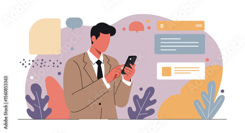 Freelance. Young man working from home lying on bed, flat vector illustration. Freelancer male character working on laptop computer in bedroom. Remote work, distance education, online learning.