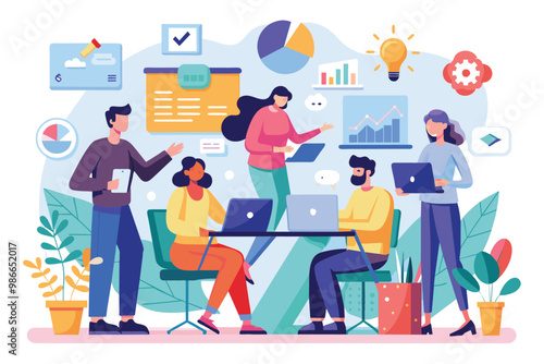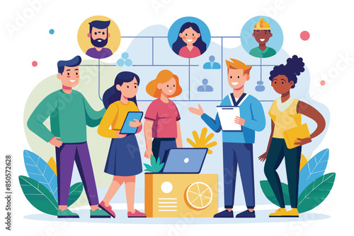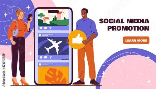 Fresh and healthy fruit and veg market stalls with male and female characters sellers and buyers, vector illustration. Bazar, online farmers market concept for web banner, website page etc.