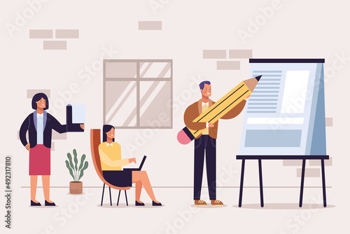 Full of energy and tired exhausted businessmen at workplace, vector flat isolated illustration. Office people with low and high full level energy batteries using computers. Work fatigue concept.