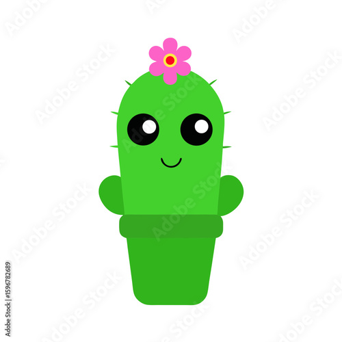 Cactus vector. Funny succulent plant nerd mascot with yellow blossom flower cartoon illustration. Cute cacti face with positive smile wearing eyeglasses in flowerpot isolated on white background