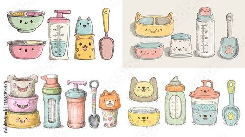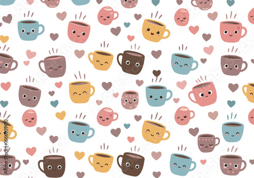 Funny cats vector seamless pattern. Creative design for fabric, textile, wallpaper, wrapping paper with happy cats eating, sleeping, taking bath.
