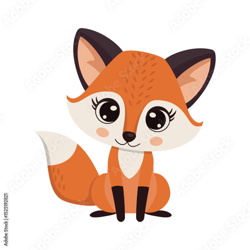 Funny fox vector. Cute forest animal cartoon icon. Comic woodland character with red tail holding cup of coffee, drinking tea beverage flower isolated on white background