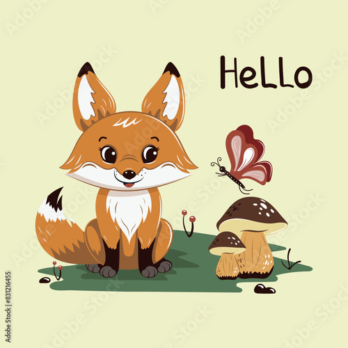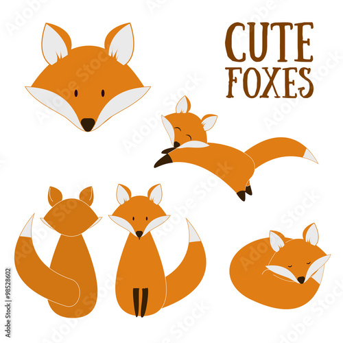 Funny fox vector. Cute forest animal cartoon icon. Comic woodland character with red tail walking, running, jumping, having fun isolated on white background