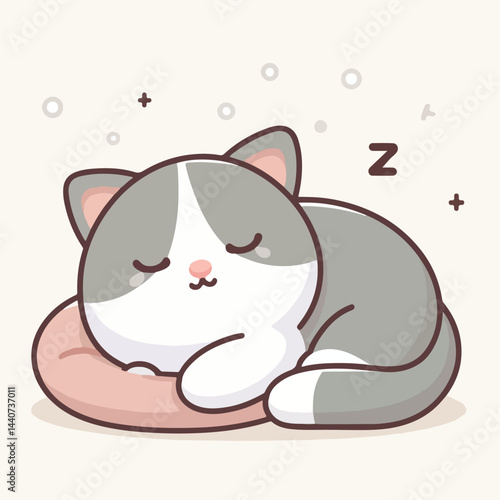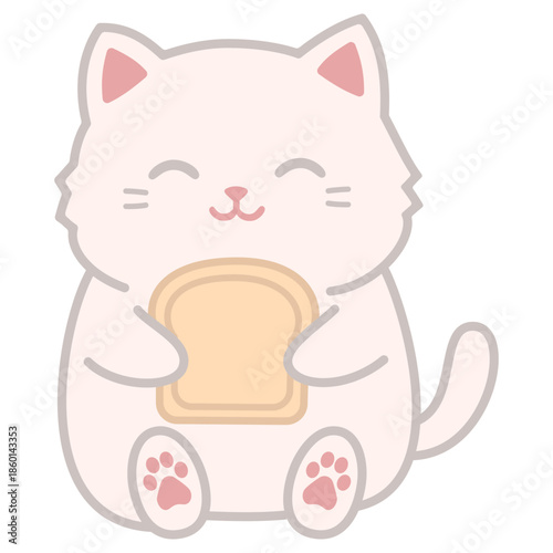 Well-fed cat vector. Cartoon chubby kitten eating dry food from bowl icon. Funny domestic animal illustration on white background