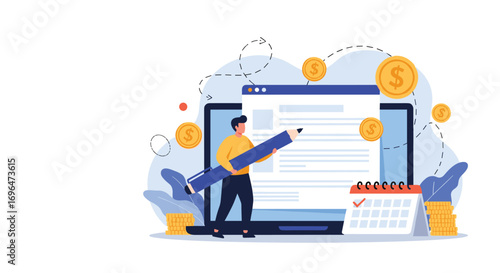 Handyman or furniture collector assembling and installing closet or cupboard using hand drill tool, flat vector illustration. Furniture assembly.