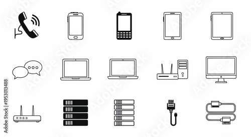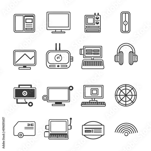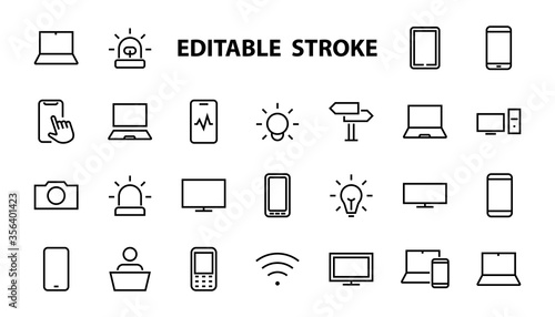 Gadgets and technology icons set, linear style. Vector illustration in simple line design