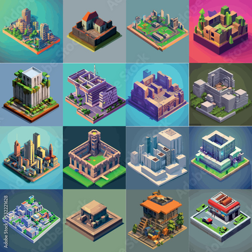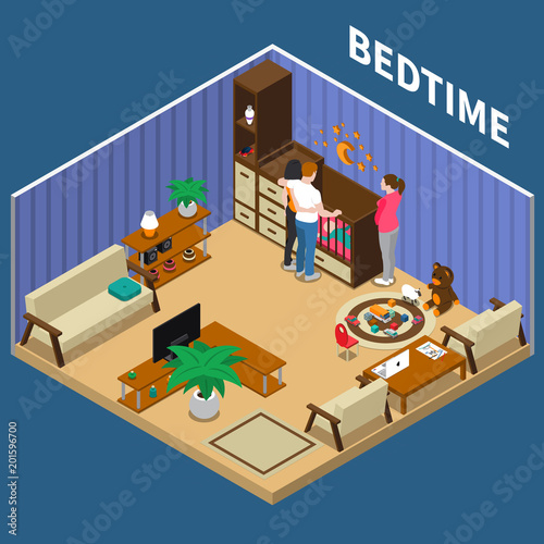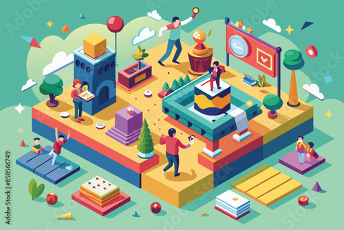 Game club vector flat 3d isometric illustration. Cutaway interior with amusement arcade game machines, video arcade and table games concept design elements.