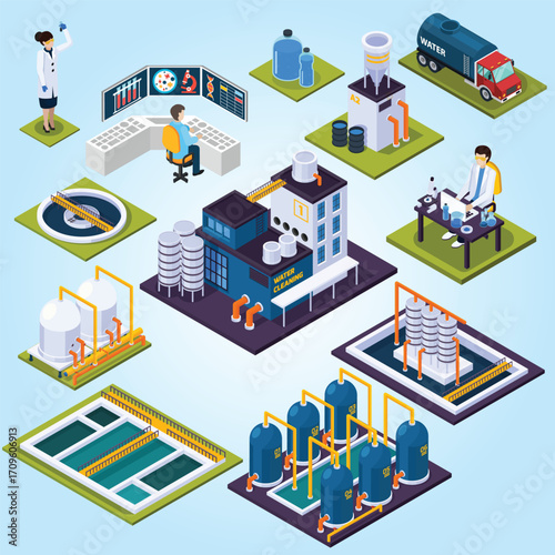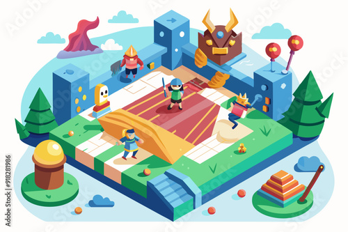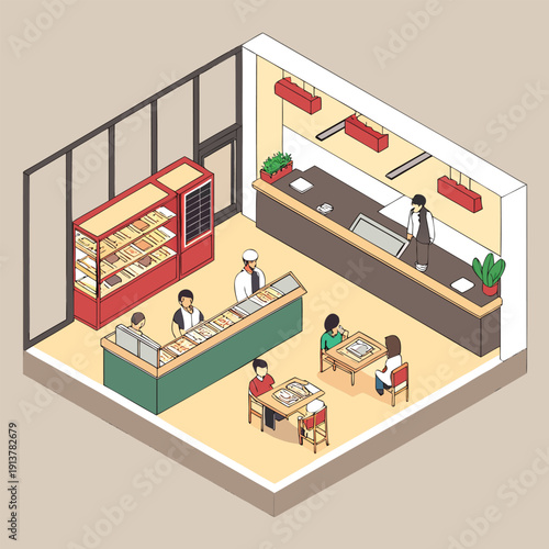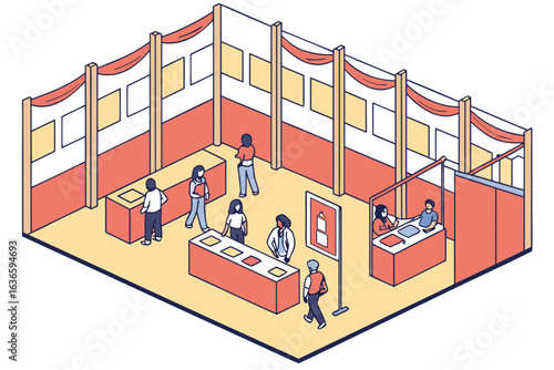 Game club vector flat 3d isometric illustration. Cutaway interior with amusement arcade game machines, video arcade and table games concept design elements.