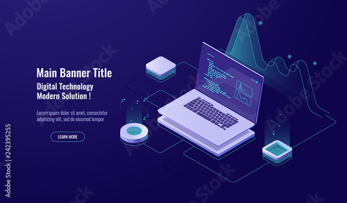 Game gadgets web banner template. Equipment for gamers including console, controller, computer, vector isometric illustration. Online games and video console gaming.