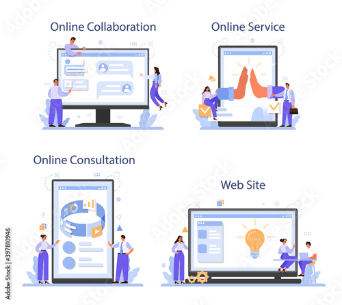 Game vector website template, web page and landing page design for website and mobile site development. Cyber sport concept with big computer and tiny people gamers playing online football tournament.