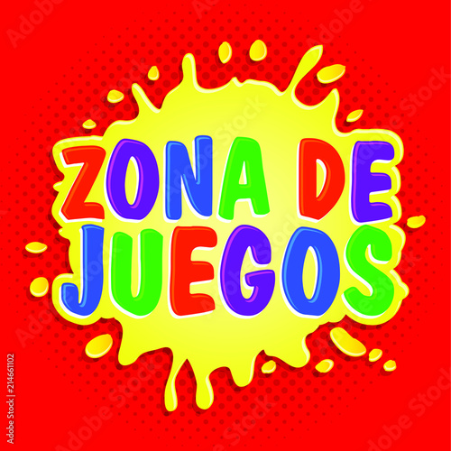 Game zone label vector. Child party room icon. Kid fun area, playground sticker illustration isolated on white background. Place for children leisure entertainment and activity badge