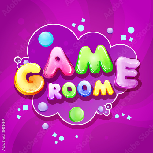 Game zone label vector. Kid party room icon. Child fun area emblem cartoon design. Playground sticker illustration isolated on white background