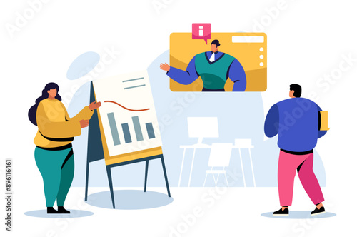 Garage sale. People selling and buying home furniture, household appliances and other vintage used items, flat vector illustration. Yard sale, flea market.