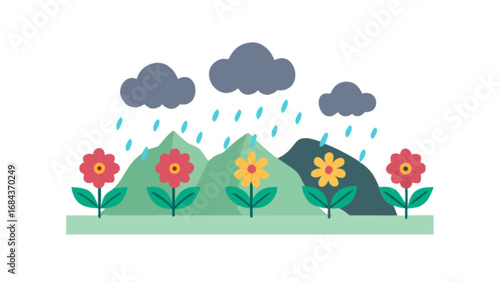 Garden vector poster with people characters gardening, growing and caring for plants. Gardener illustration with typography letters. Watering, planting, raking, cutting seasonal work