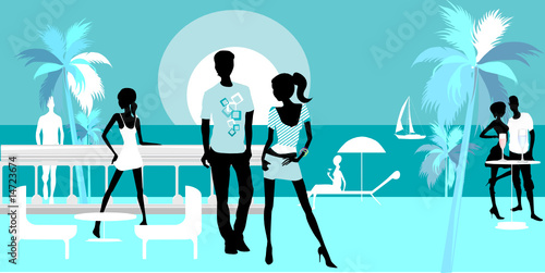 Vector illustration of tiny people growing big potted plants using garden tools watering can, rake. Gardeners men and women caring for plants. Gardening concept for web banner, website page etc.