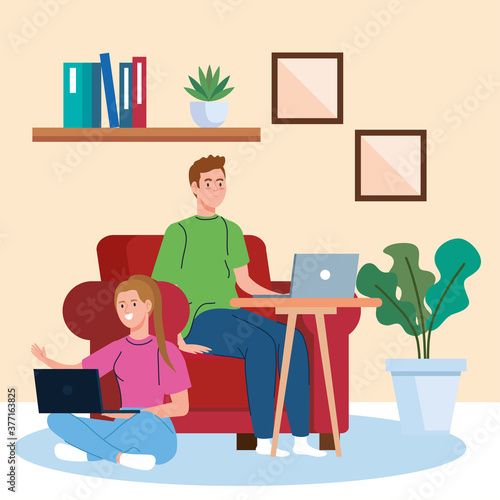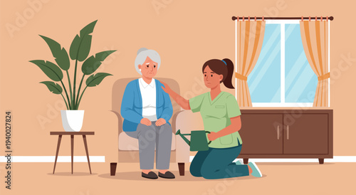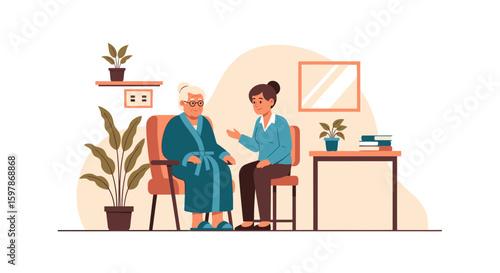 Vector illustration of woman giving pliers to worker standing next to stove in kitchen. Gasman concept flat style design.