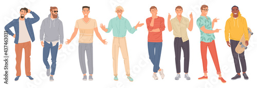 Gay couple vector set. LGBT love character illustration. Flat man family with kids, romantic homosexual spouse isolated on white background. Interracial beloved boyfriend pair