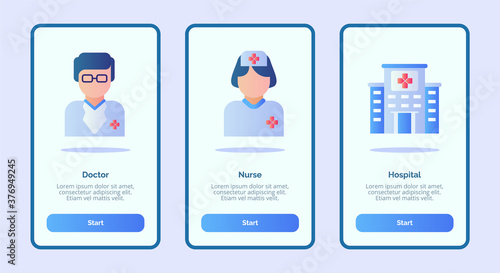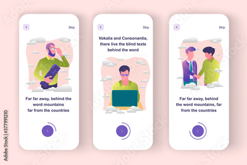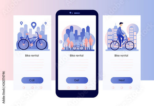 Geography teacher, map, globe, classroom interior. School subject, education. Mobile app screens. Vector banner template for website and mobile development. Web site and UI design illustration.