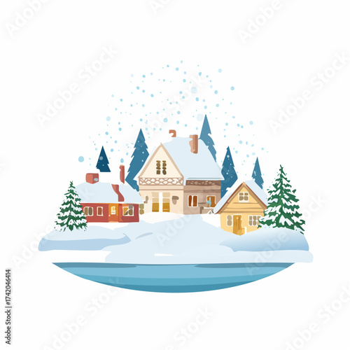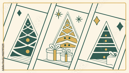 Gift box with golden ribbon and bow mockup set on display podium, paper cut winter background, vector illustration. Happy New Year, Merry Christmas seasonal sale, product pack ads template.