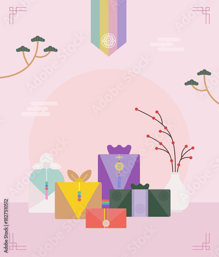 Gift in capital letters, happy people male and female characters with gift boxes, balloons, party popper, vector flat style design illustration. Party celebration.