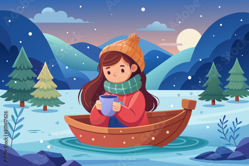 Girl brings sleeping dog to her bed. Home pet concept vector illustration. Woman travels by boat with her puppy dog.