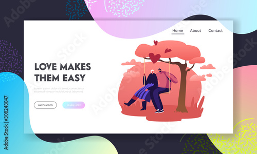 Girl cycling in a park. Woman ride bicycle, summer outdoor activity, healthy lifestyle. Vector web site design template. Landing page website concept illustration.