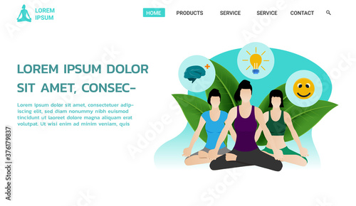 Girl doing meditation and gyan mudra yoga with nature on background. Human enlightenment concept. Subtle energy, life balance. Vector web site design template. Landing page website illustration