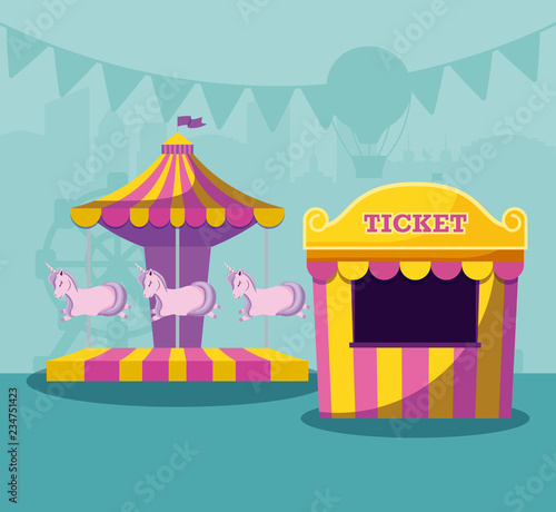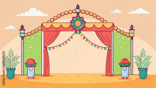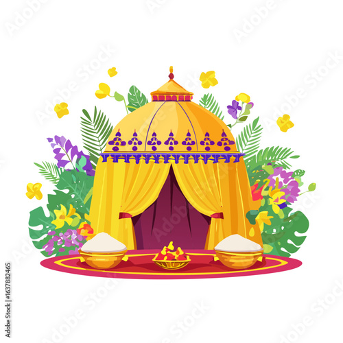 Girl drinks hot mulled wine in front of christmas market fair stall. New year traditional fair vector concept illustration. Russian holiday market stall with samovar. Web site design template.