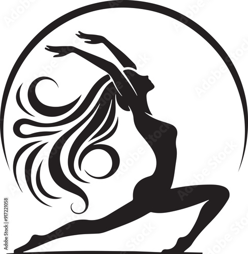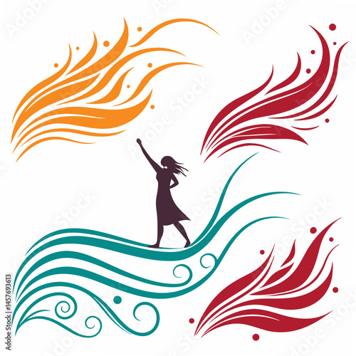 Beautiful girls, rhythmic gymnasts silhouettes dancing with ball, hoop and ribbon, vector illustration in paper art style. Rhythmic gymnastics. Ballet, acrobatics and dance.