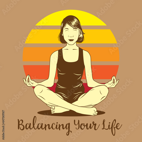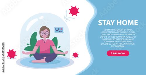 Girl listen music in headphones and meditate at home. Woman put flowers in vase. Hobby and leisure time concept illustration. Vector web site design template. Landing page website illustration.