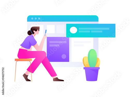 Girl reading news on digital gadget at home. Man at newsstand reading morning newspaper. Business news concept illustration. Vector web site design template. Landing page website illustration.
