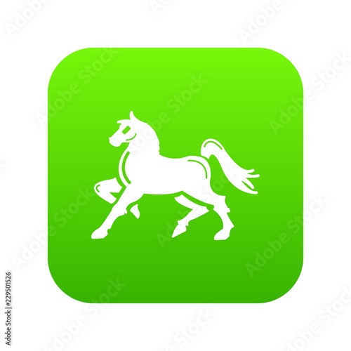 Blonde girl in blue dress, holding stirrup, riding a white horse bareback. Vector illustration in flat design. Side view