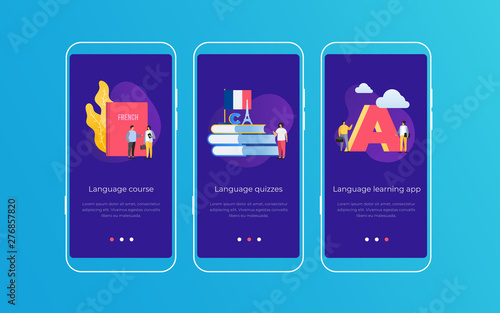 Girl smoking cigarette at the bus station. No smoking sign at public transport stop. Mobile app screens. Vector banner template for website and mobile development. Web site and UI design illustration.