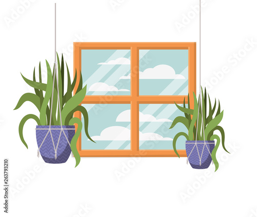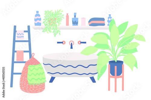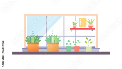 Girl taking care of house plants growing in pots. Houseplants and home garden concept illustration. Vector web site design template. Interior with cactus and green plants.