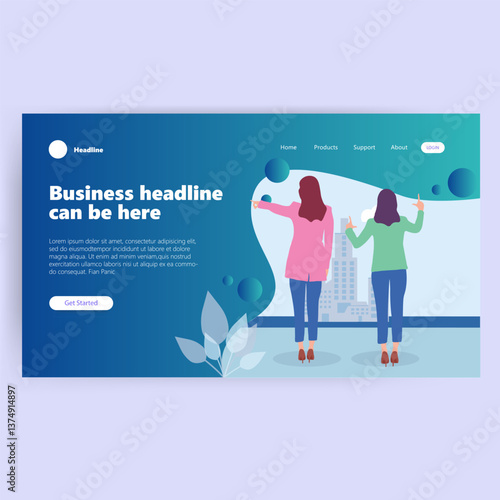 Girls soccer team vector website template, landing page design for website and mobile site development. Football winner girl team with gold trophy cup.