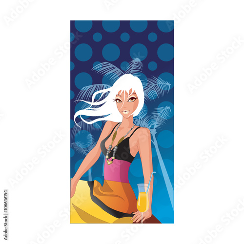Vector illustration of beautiful sexy pin up girl with long hair, follow me lettering. Glamour woman portrait in retro pop art comic style.