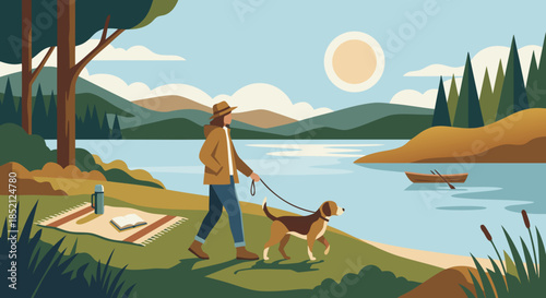 Glamping and camping in nature, vector poster with A-frame house. Luxury aframe house for recreation outdoors. Travel ourdoor and adventure concept.