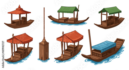 Glamping and camping in nature, vector posters set. Luxury a-frame house, glass and bubble houses for recreation outdoors. Travel ourdoor and adventure concept.